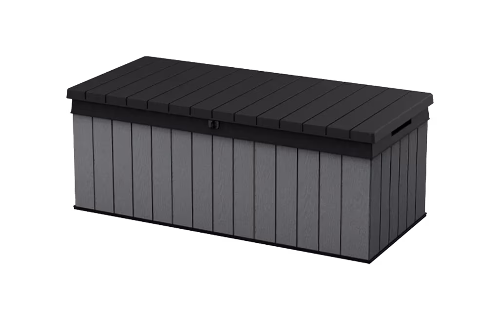ארגז אחסון דארווין בנפח אחסון של 380 ליטר- דור חדש של ארגזי אחסון שישדרגו כל גינה או מרפסת.במראה עץ טבעי קלאסי, מתאים לאחסנת כריות גן, כלי גינון, משחקים לגינה ופריטים נוספים, ארגז האחסון משדרג את עיצוב החוץ במרפסת ובגינה ועוזר לשמור עליה נקייה ומסודרת. עשוי מחומר Evotech™ המתקדם והעמיד בפני פגעי מזג האוויר ונזקי קרינת השמש לאורך זמן ללא חלודה, התקלפות, ריקבון או שינויים בצבע, מצויד במנגנון אוטומטי לפתיחה קלה של המכסה, מתקן למנעול והוא מוגבה מהרצפה לשמירה על התכולה יבשה ומאווררת לאורך כל השנה. משמש גם כתוספת מקום ישיבה לשני מבוגרים