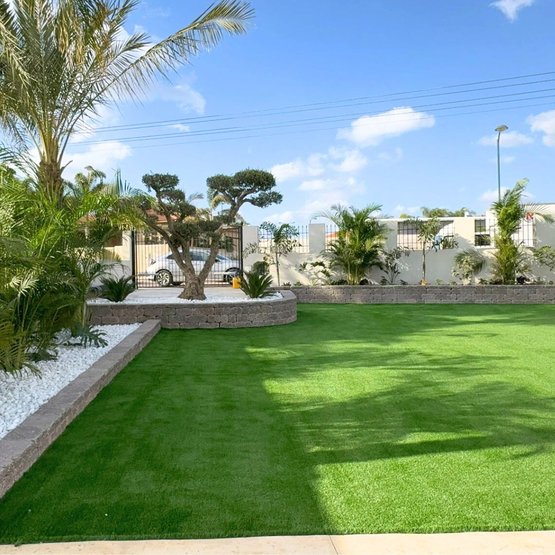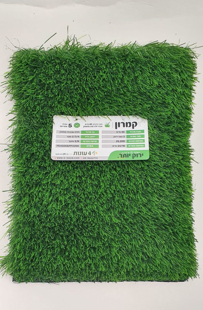דשא סינטטי איכותי מדגם קמרון ברוחב 4 מטר ובגובה 45 מ״מ ואורך משתנה לבחירה.