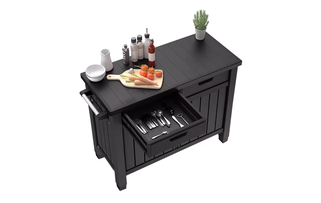 יוניטי מזנון ברביקיו עם מגירות- רהיט משלים לאירוח. מזנון חוץ שהוא גם ארון אחסון הכולל שתי מגירות וגם משטח הגשה- פתרון אירוח רב תכליתי המאפשר לשדרג את חווית האירוח בנוחות ובקלות. שילוב נהדר של עיצוב אלגנטי ועמידות בפני פגעי מזג האוויר. מתאים להגשה, מזיגת משקאות ומשימות אירוח נוספות, הכל במקום אחד מבלי להשאיר את האורחים שלכם לבד.בסדרת יוניטי מוצרים נוספים