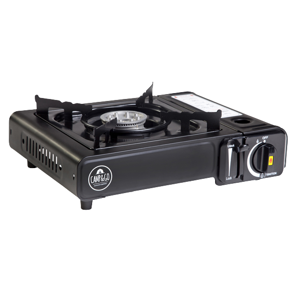 כירת גז ניידת לבישול בשטח, מבער גז עוצמתי לבישול והרתחה, כולל מנגנון אבטחה למניעת דליפת גז, כפתור ווסת לשליטה בעוצמת הגז.
