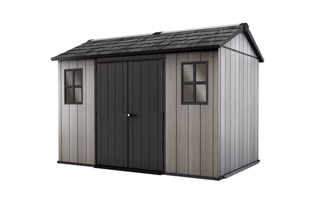 מחסן אוקלנד 11×7.5 בנוי לעמידות גם בתנאי מזג האוויר הקשים ביותר. למחסן גג חזק וקירות העשויים מחומר DUOTECH™ המתקדם עם דופן כפולה בחיזוק פלדה, רצפה חזקה לאחסנת כלי גינון, ריהוט גן וחפצים נוספים ללא חשש שיירטבו או יתלכלכו בבוץ. המחסן מצויד בדלת קדמית כפולה לגישה נוחה ולהכנסה והוצאה בקלות של חפצים גדולים, תקרה בעלת סקיילייט (חלון תקרה קבוע) לתאורה טבעית וחלונות ויקטוריאניים שמכניסים אור טבעי בשפע ומוסיפים נגיעת עיצוב כפרית קלאסית לכל גינה או חצר.לוחות המבנה ניתנים לצביעה עצמית בהתאם לטעם האישי