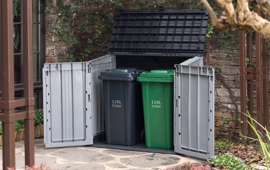 מחסן גינה פריים- פתרון אחסון רב תכליתי עם נפח אחסון של 880 ליטר, שתי דלתות קדמיות ומכסה עליון, רצפה חזקה לאחסנת חפצים כבדים ללא חשש שיירטבו או יתכלכלו בבוץ, פתחי אוורור לשמירה על התכולה יבשה ומאווררת לאורך כל השנה ומתלה למדף (המדף נמכר בנפרד) לארגון וניצול יעיל של כל חלל האחסון. המחסן מצויד במנגנון הידראולי לפתיחת המכסה בקלות ביד אחת ולהשארתו פתוח ללא חשש שייטרק, במתקן המאפשר לחבר את מכסי הפחים למכסה המחסן כך שהם ייפתחו ביחד איתו ובמנגנון נעילה שימושי להרחקת ילדים ובעלי חיים שבעזרתו אפשר לנעול גם את הדלתות הקדמיות וגם את המכסה או רק את הדלתות הקדמיות. מגיע באריזה שטוחה שנכנסת בקלות לרכב פרטי, קל להרכבה ועמיד לאורך זמן.