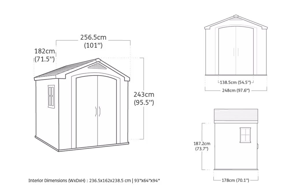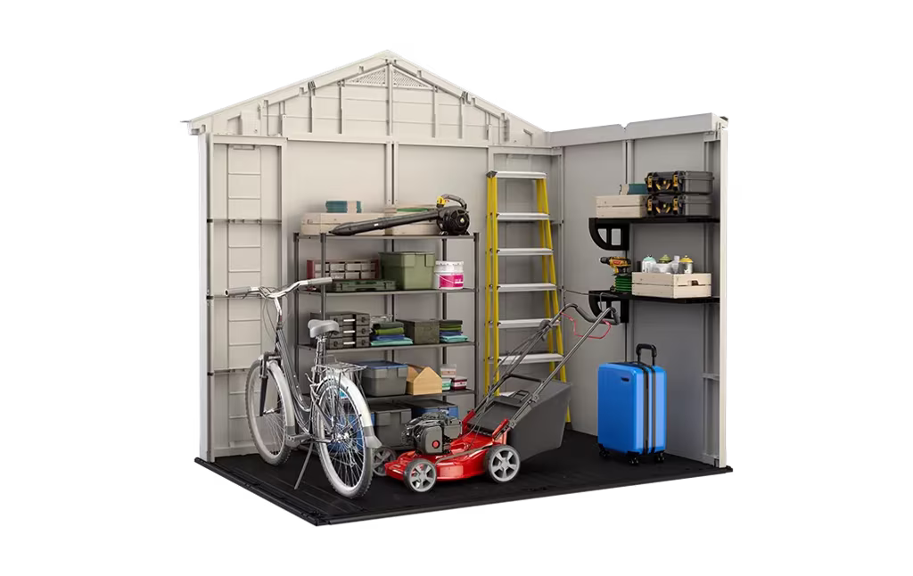 מחסן גינה פקטור 8×6 פתרון אחסון מעוצב למרפסת ולגינה. קירות המחסן עשויים מחומר מתקדם ועמיד בפני פגעי מזג האוויר לאורך זמן שלא דורש תחזוקה, מגיע עם שני מדפים ומצויד בדלת כפולה עם מתקן למנעול לגישה נוחה, רצפה חזקה לאחסנת ציוד וחפצים כבדים ללא חשש שיירטבו או יתלכלכו בבוץ, חלון וחלון גג המכניסים או טבעי בשפע, פתחי אוורור לשמירה על תכולת המחסן יבשה ומאווררת לאורך כל השנה ותקרה גבוהה תקרה גבוהה לכניסה ויציאה בנוחות מבלי להתכופף.