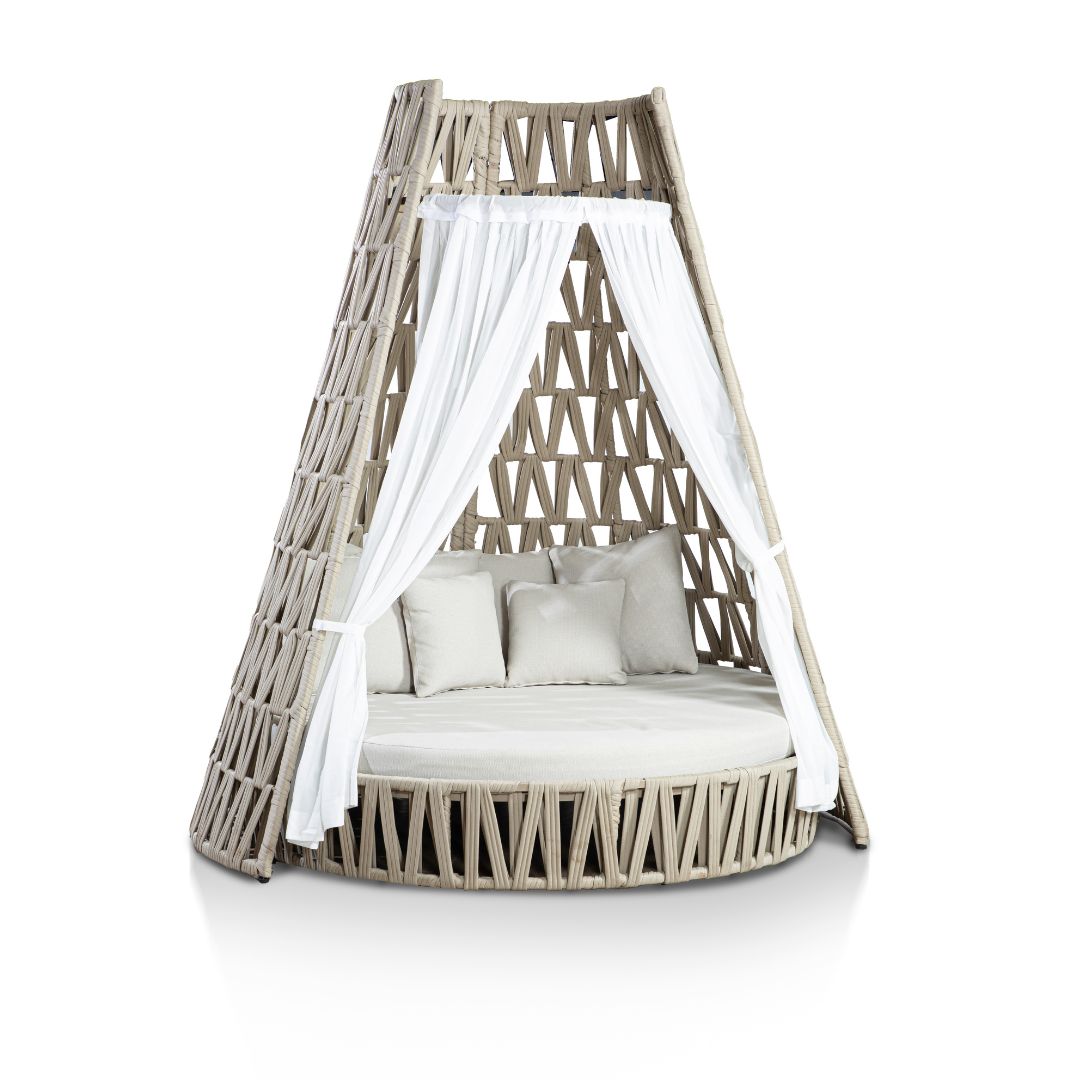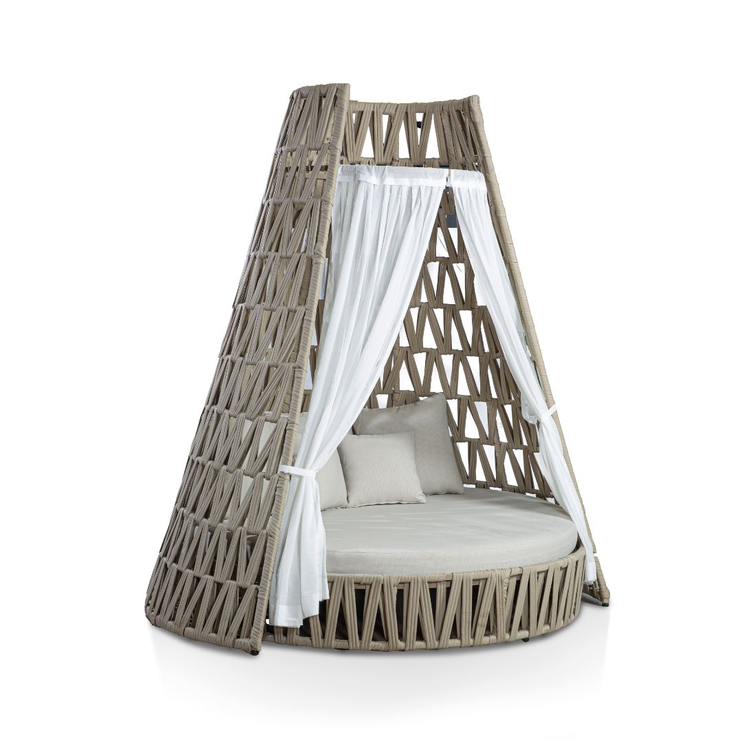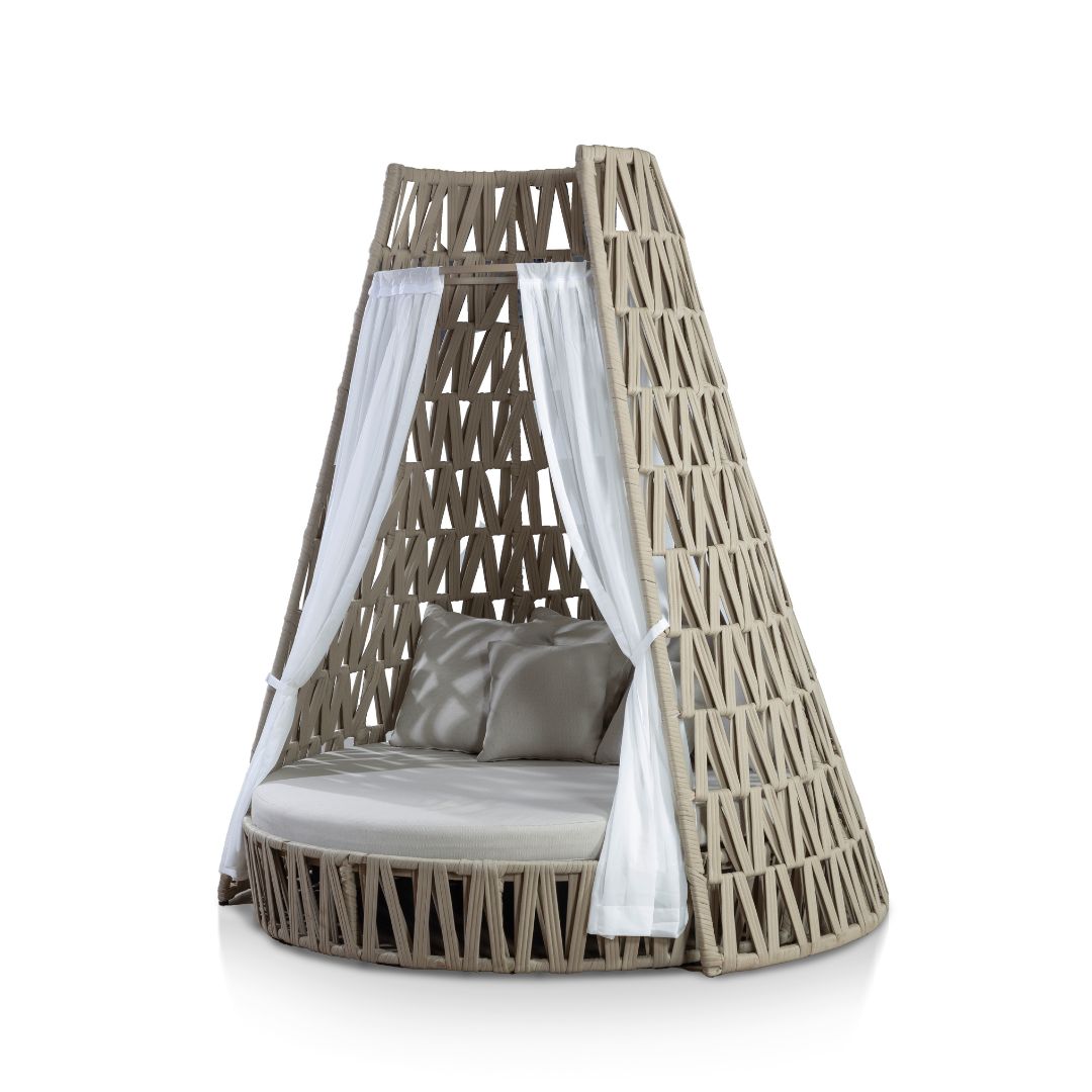 מיטת רביצה לגינה – דגם מלטה גדולה עשויה ראטן סינטטי, להשתרעות מפנקת במיוחד בחצר, במלון או בגינה, מפואר למראה. בנוי בצורה מסורתית, כמו בתאילנד.