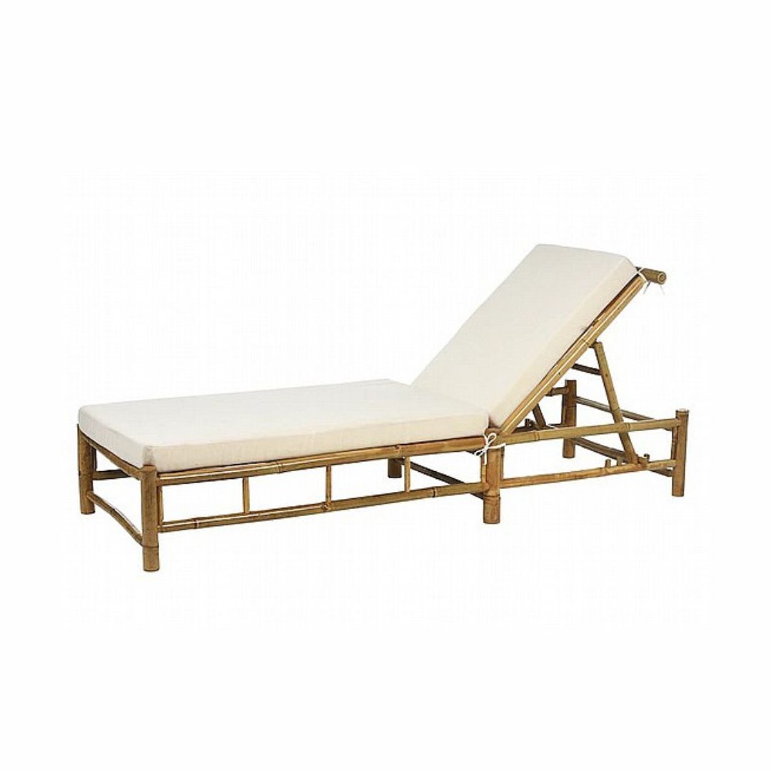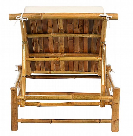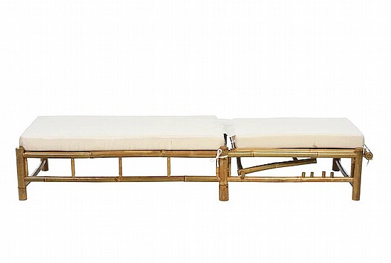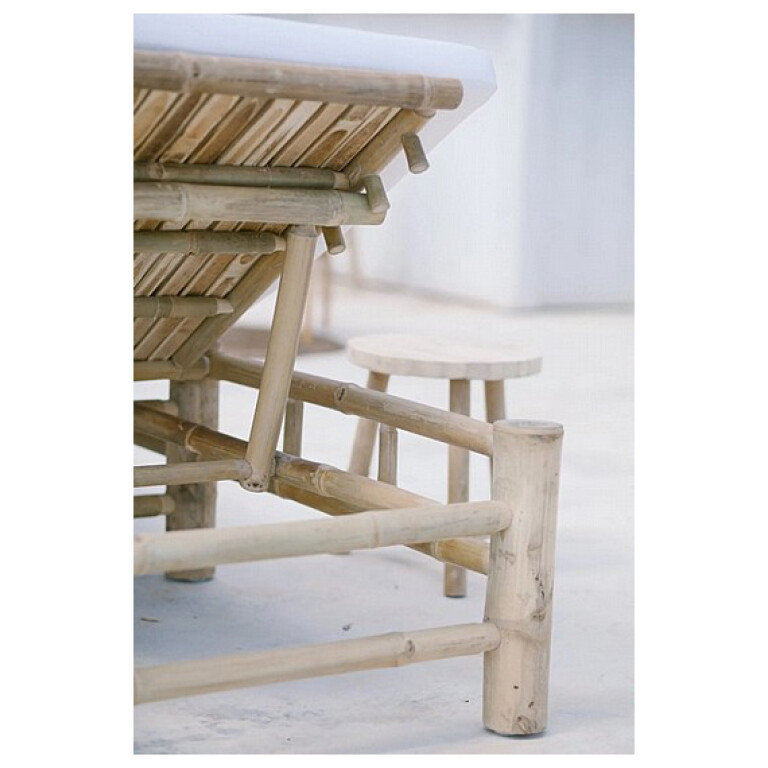 מיטת השיזוף במבוק, עשויה מוטות במבוק עבים וחזקים, עמידים בתנאי חוץ לאורך זמן.