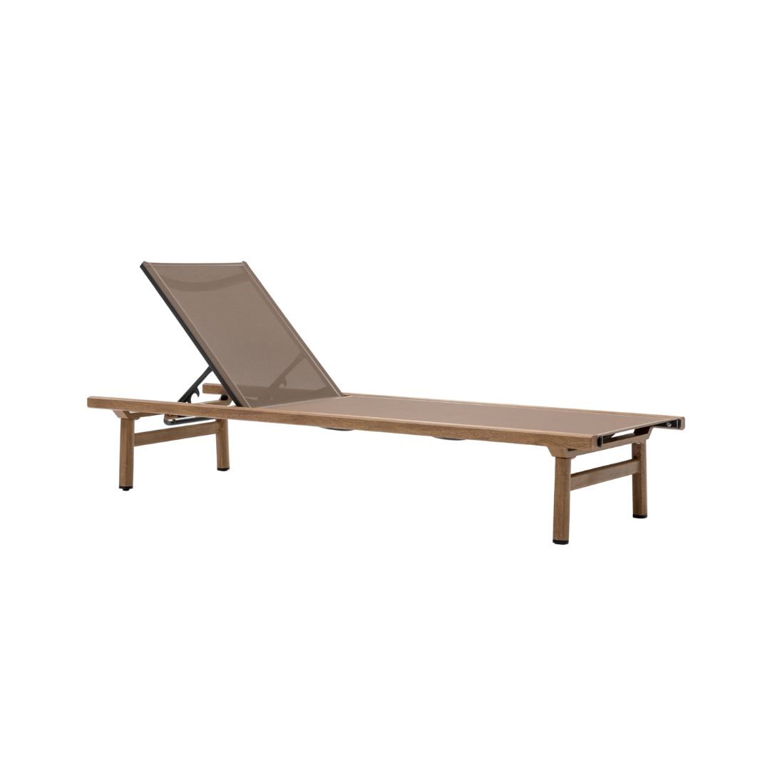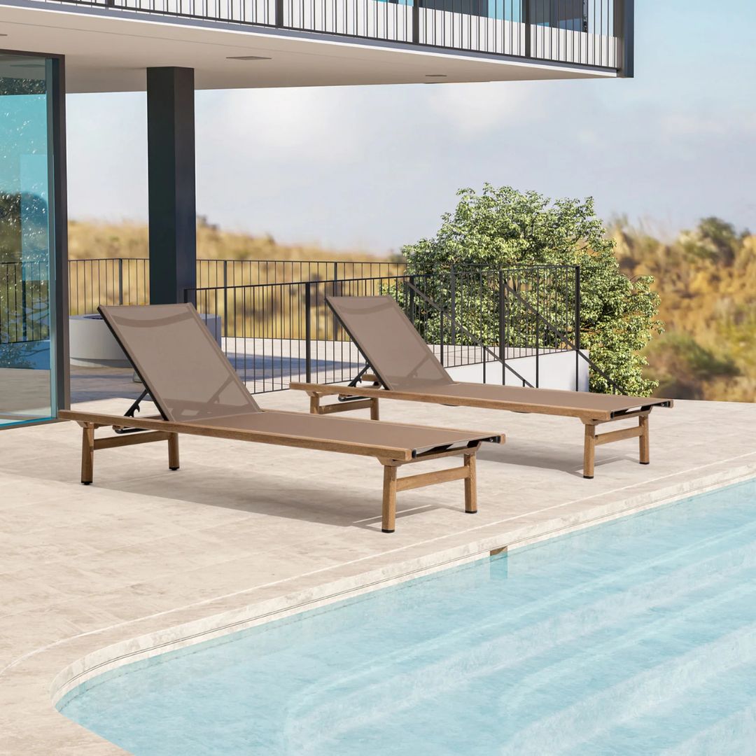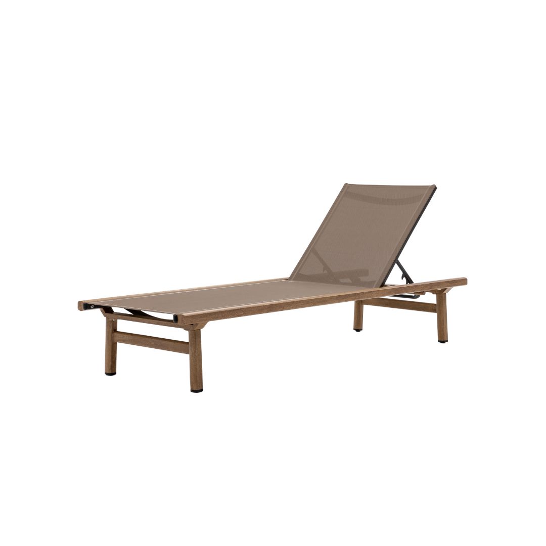 מיטת השיזוף עשויה אלומיניום בגוון דמוי עץ מעניקה שילוב מושלם של עיצוב אלגנטי, נוחות מקסימלית ועמידות גבוהה למים, מה שהופך אותה לאידיאלית לשימוש בבריכה, בגינה ובמרפסת. עם מושב סלינג מתייבש במהירות ומשענת מתכווננת, היא מספקת חוויית מנוחה יוקרתית במיוחד.