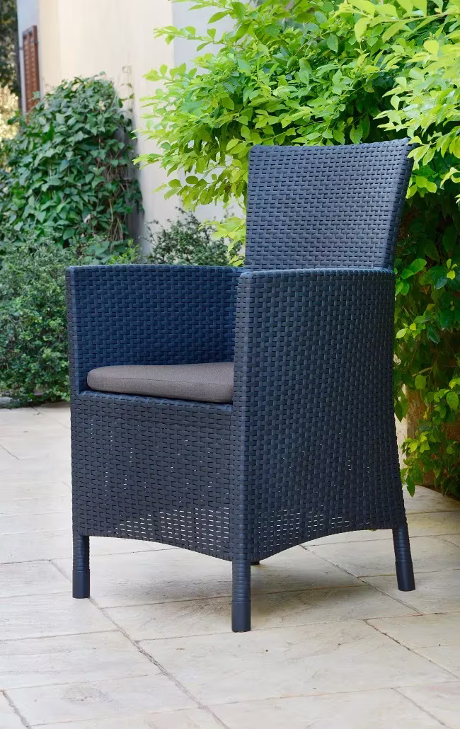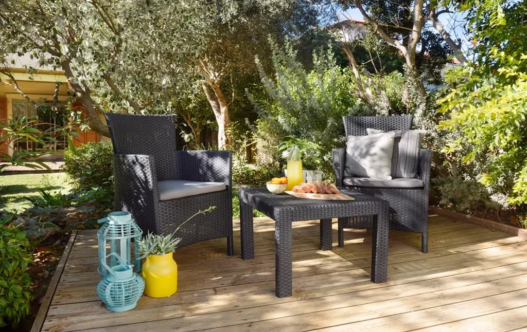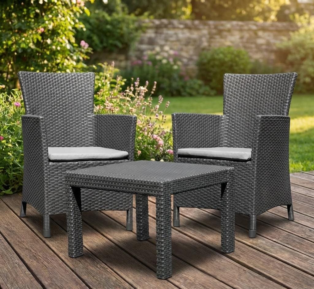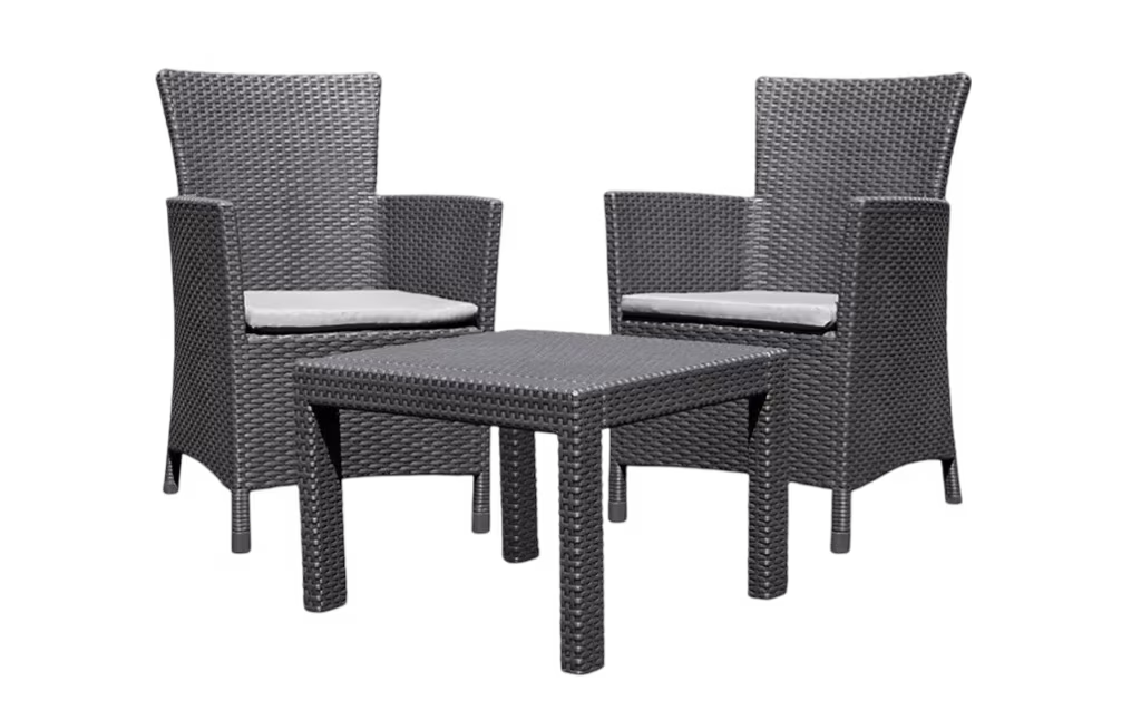 מערכת הישיבה רוסריו בלקוני מתאימה במיוחד למרפסות קטנות והיא יוצרת פינת ישיבה נפלאה לימי וערבי הקיץ החמים. מערכת הישיבה כוללת שולחן וזוג כורסאות בטקסטורת ראטן שטוחה, עיצוב נקי, קלאסי וארגונומי עם כריות עבות ומפנקות, קלה לניוד ולאחסנה ועשויה מחומר מתקדם, קל משקל ועמיד בפני פגעי מזג האוויר לאורך זמן ללא תחזוקה.