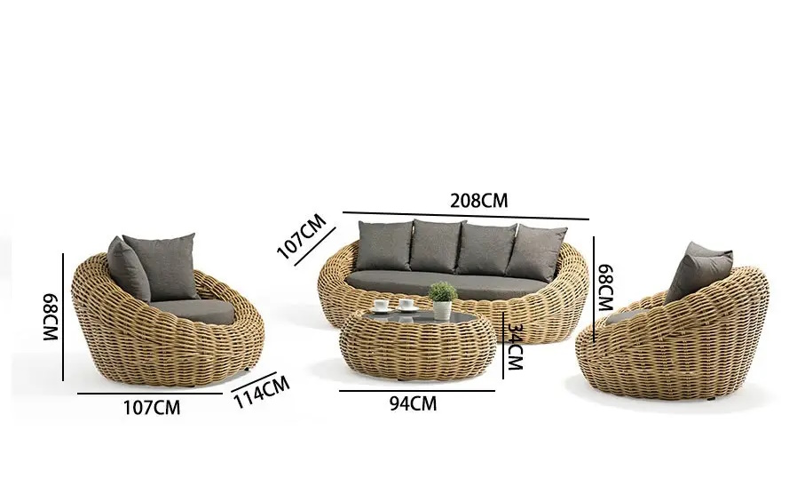 כורסא תלת מושבית – רוחב 208 ס"מ, עומק 107 ס"מ, גובה 68 ס"מ