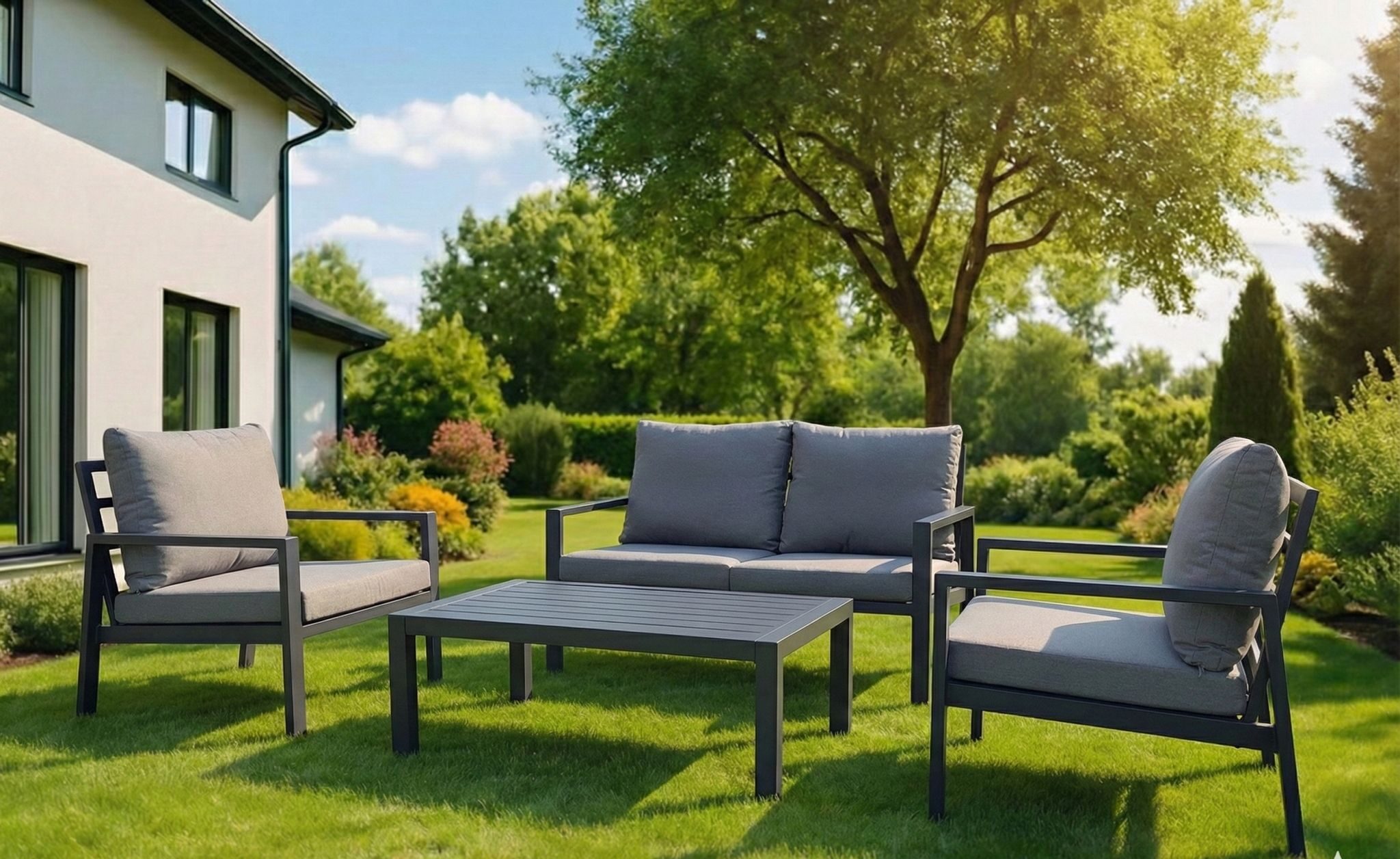 סט ישיבה 4 חלקים, עשוי אלומיניום בצבע אפור