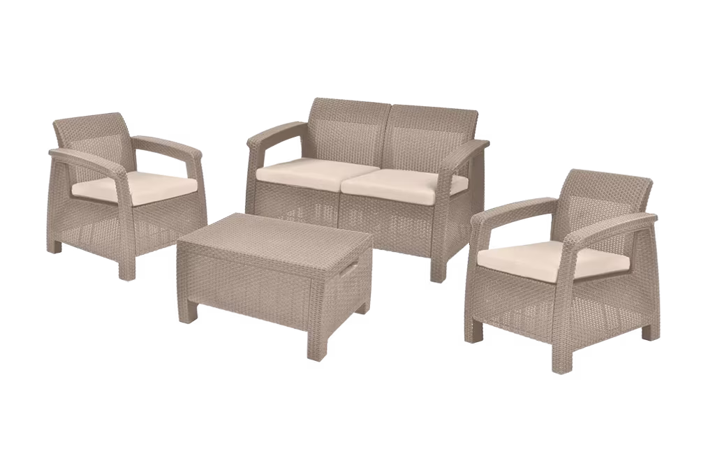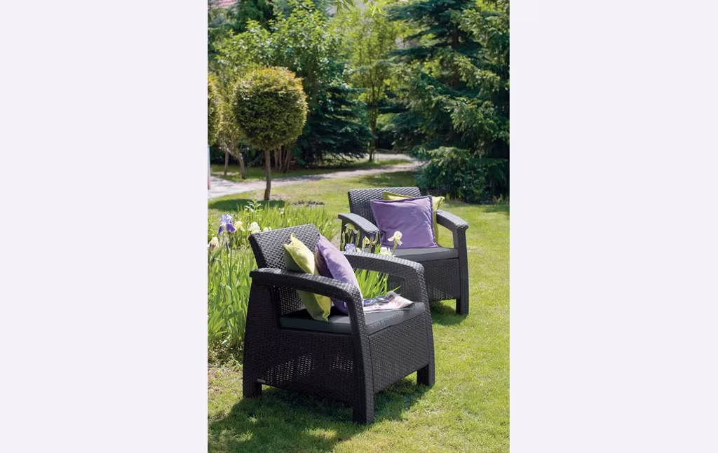 הסט כולל כריות מושב והוא מאפשר להביא את חווית האירוח של הסלון הביתי לגינה או למרפסת.