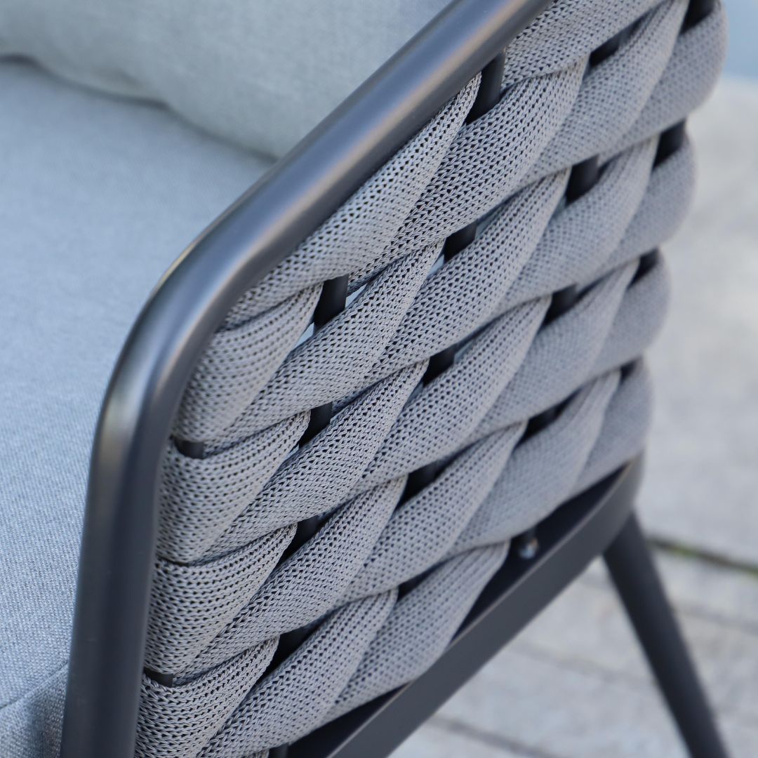 סט מעוצב עם ספת חבלים אפור בעיצוב מודרני – שילוב מושלם של נוחות וסטייל לגינה או למרפסת
