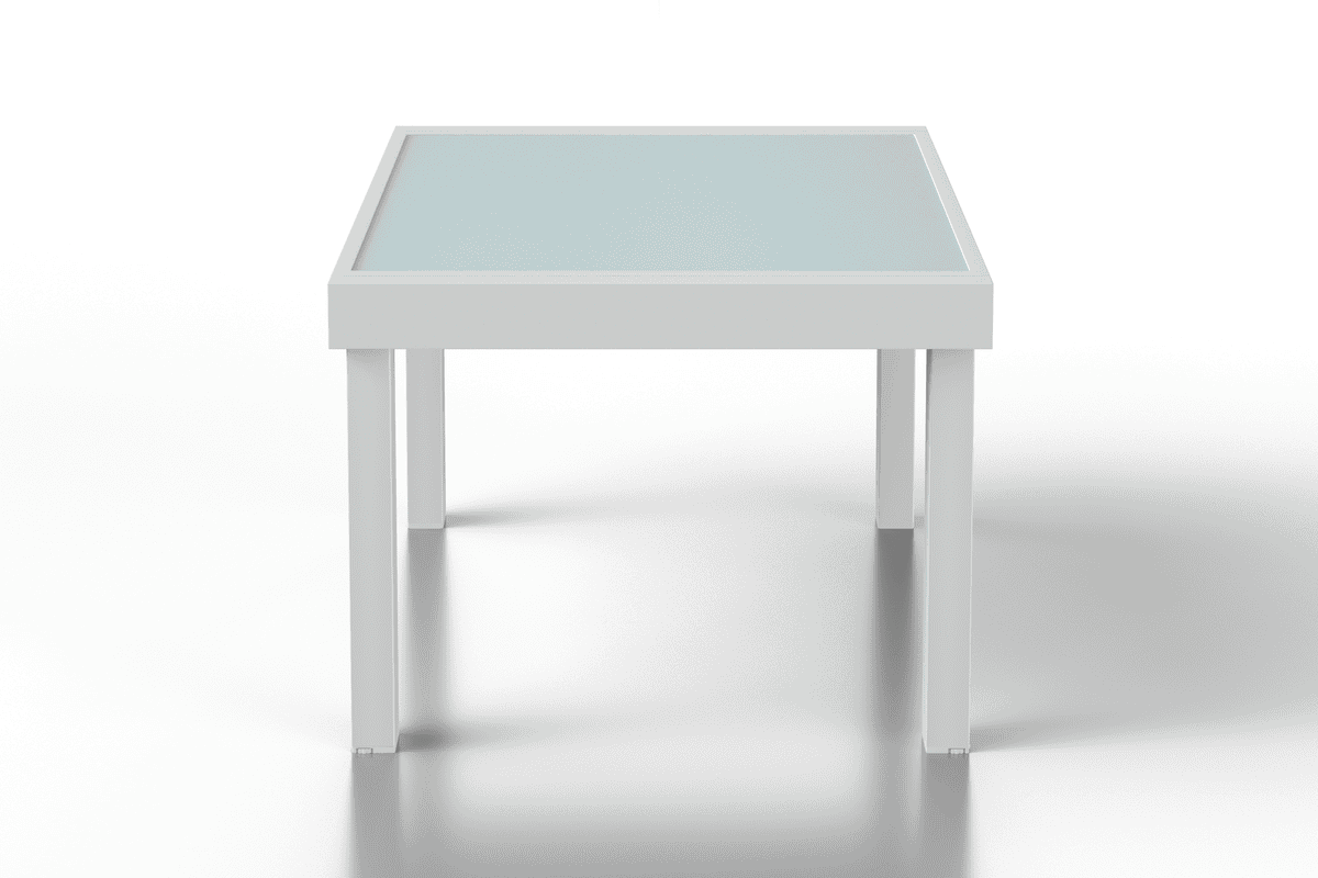 בסיס השולחן עשוי 100% מאלומיניום איכותי ועבה ומשולב עם פלטת זכוכית מחוסמת בעובי 5 מ"מ.