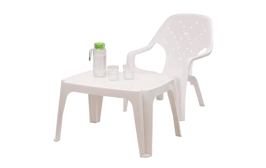 שולחן צד עשוי פלסטיק עמיד ויציב.